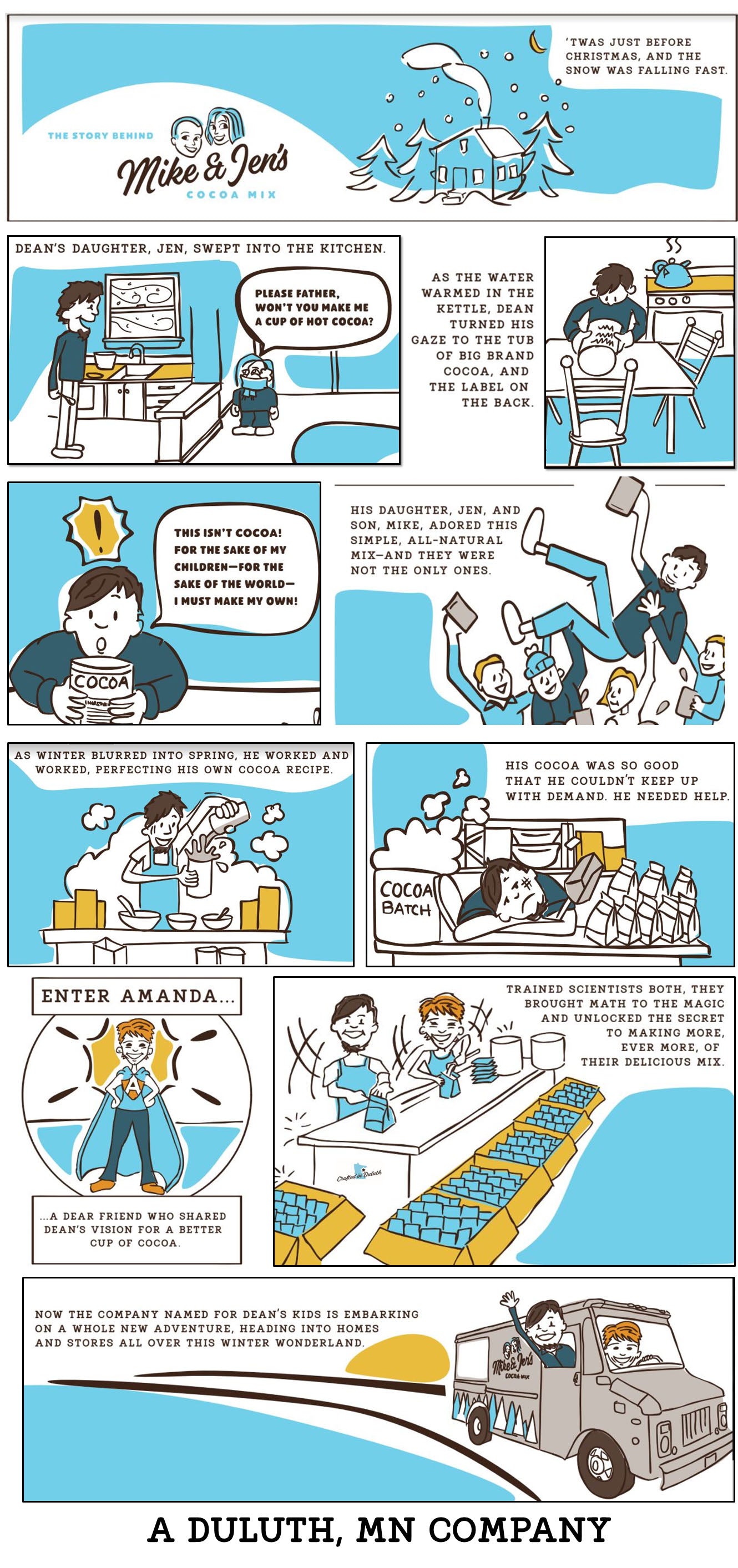 It all began back in 2012, when Mike and Jen were just 9 and 11, hand mixing & packaging our mix at a local church basement. We attended MANY local art fairs and markets and soon Mike and Jen's was carried in a handful of local gift shops. By 2016, our family cocoa mix was available in 10 local Duluth, MN stores including our local grocery store. (we thought we were a pretty big deal!)