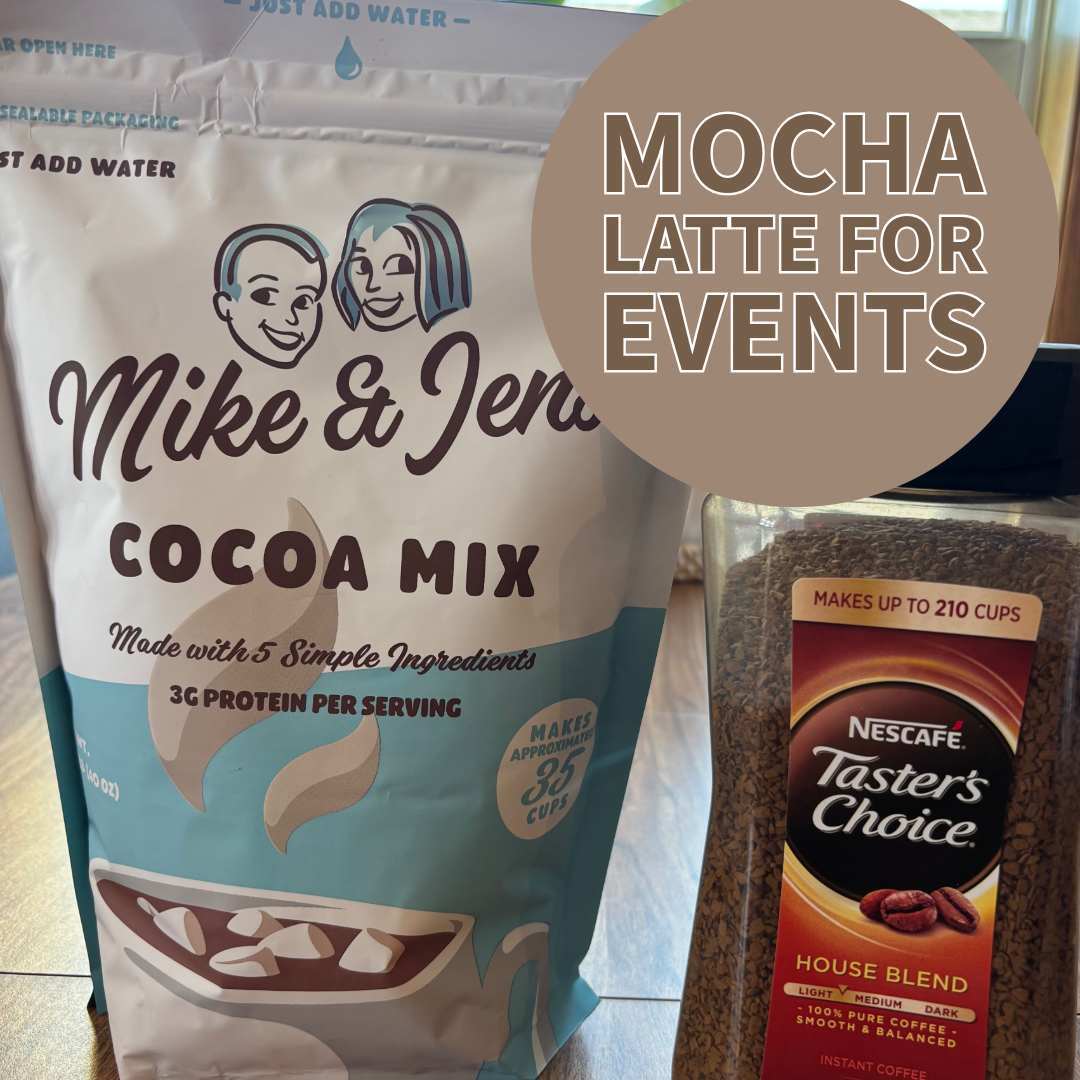 - Add 4 cups of any instant coffee for each 40 oz Bag of Mike and Jen's Cocoa Mix.